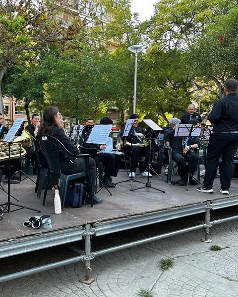 L’actuació de la Banda Municipal de Camp Redó va omplir el parc de música i alegria.